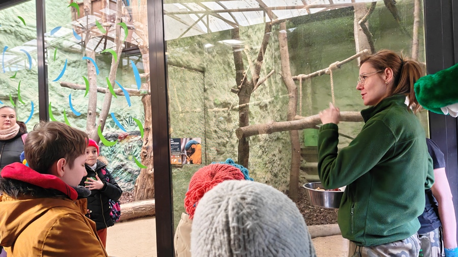 Udział w karmieniu zwierząt: Dowiedzieliście się co jedzą mieszkańcy ZOO i jak wygląda ich karmienie, ponieważ wybrane zajęcia obejmowały udział w karmieniu niektórych zwierząt pod czujnym okiem opiekunów.