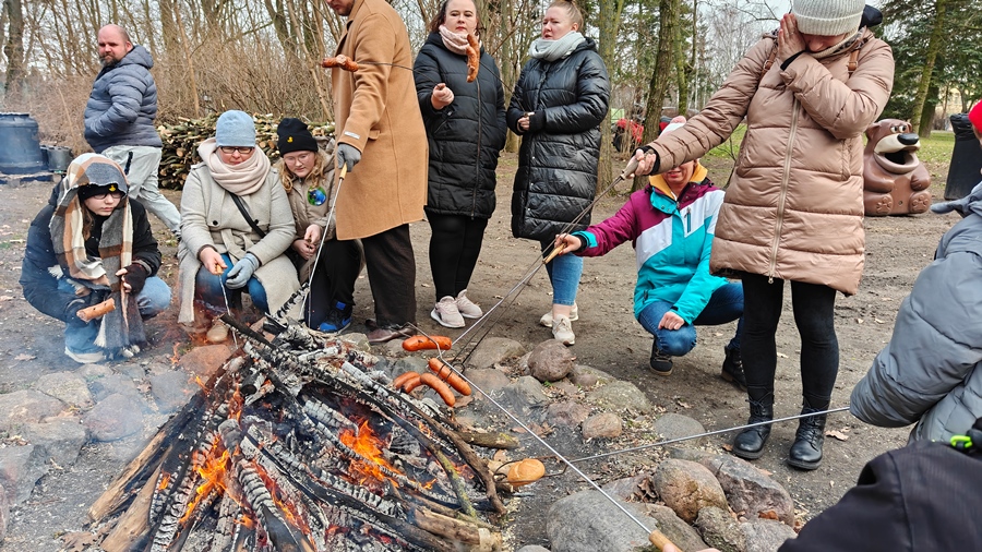Ognisko: Każdy tydzień ferii kończyliśmy wspólnym ogniskiem, gdzie dzieci mogły upiec sobie kiełbaskę, opowiedzieć swoje wrażenia i spędzić czas przy przyjemnym cieple ogniska.