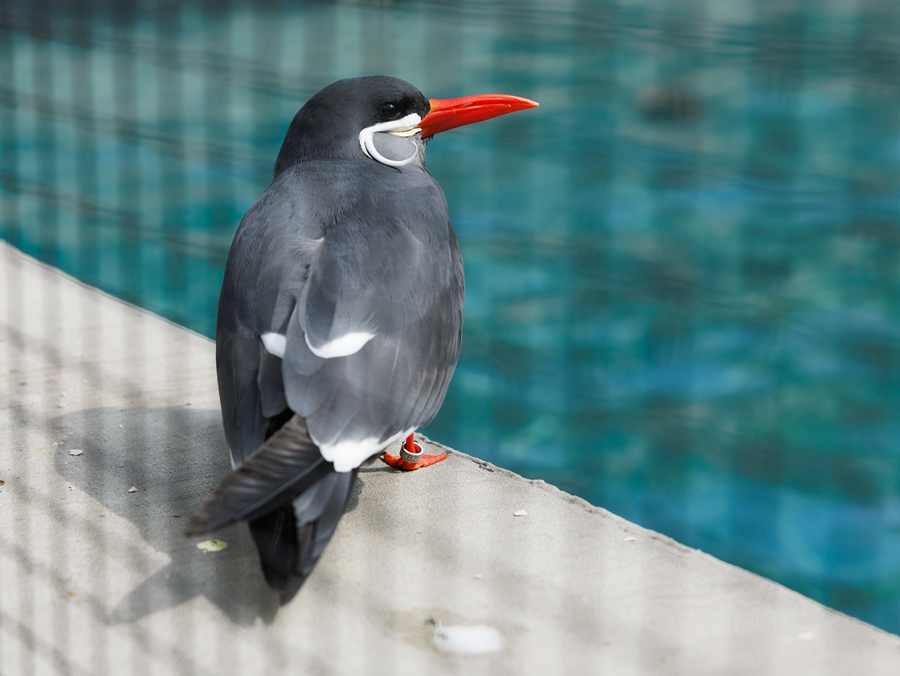 Te same tereny zamieszkuje inny ptak nadmorski – rybitwa wąsata (Larosterna inca), która również zagościła na naszym wybiegu. Ten krzykliwy ptak z rodziny mewowatych charakteryzuje się specyficznym ułożeniem piór pod oczami na kształt wąsów. Szczegóły o rybitwach (CZYTAJ TU)