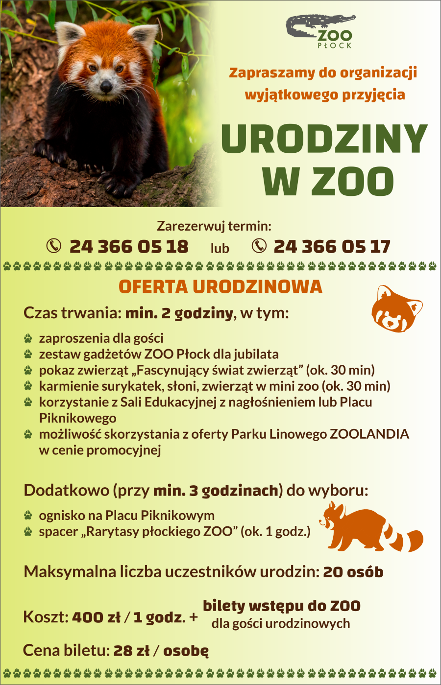 Bardzo prosimy o zapoznanie się z obowiązującym regulaminem Urodzin w ZOO